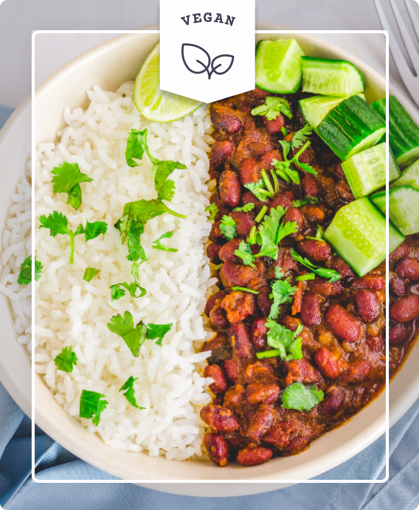 A hearty Indian dish made with kidney beans and rice, typically flavored with a blend of aromatic spices.